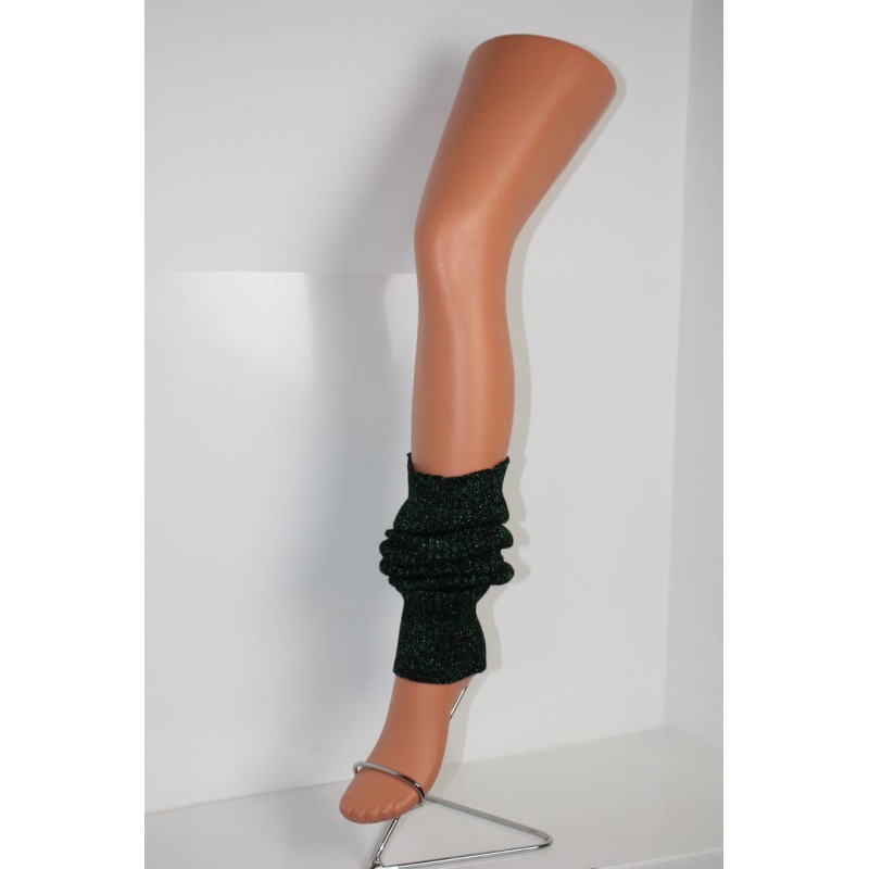 Guêtre en laine mérinos et lamé. Coloris noir et vert. Longueur 46 cm.